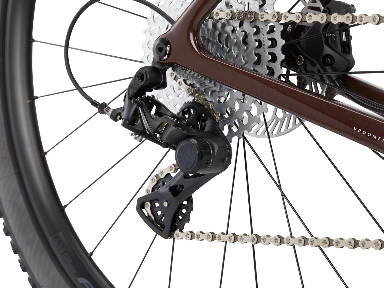 Das Exploro Race Gravelbike von 3T besteht aus Carbon und ist mit der Campagnolo Ekar 13-fach Gruppe und 27,5″ Laufrädern ausgestattet ist. Neben 57 mm breiten Reifen für unwegsameres Gelände verfügt es über ein überbreites Unterrohr und ein extrem schmales Steuerrohr. Zusammen mit der Aero-Sattelstütze und einer schmalen Gabelkrone wird das Bike sehr aerodynamisch. Der breite Gabelschaft und die beidseitig abgesenkten Kettenstreben sorgen für genügend Stabilität.