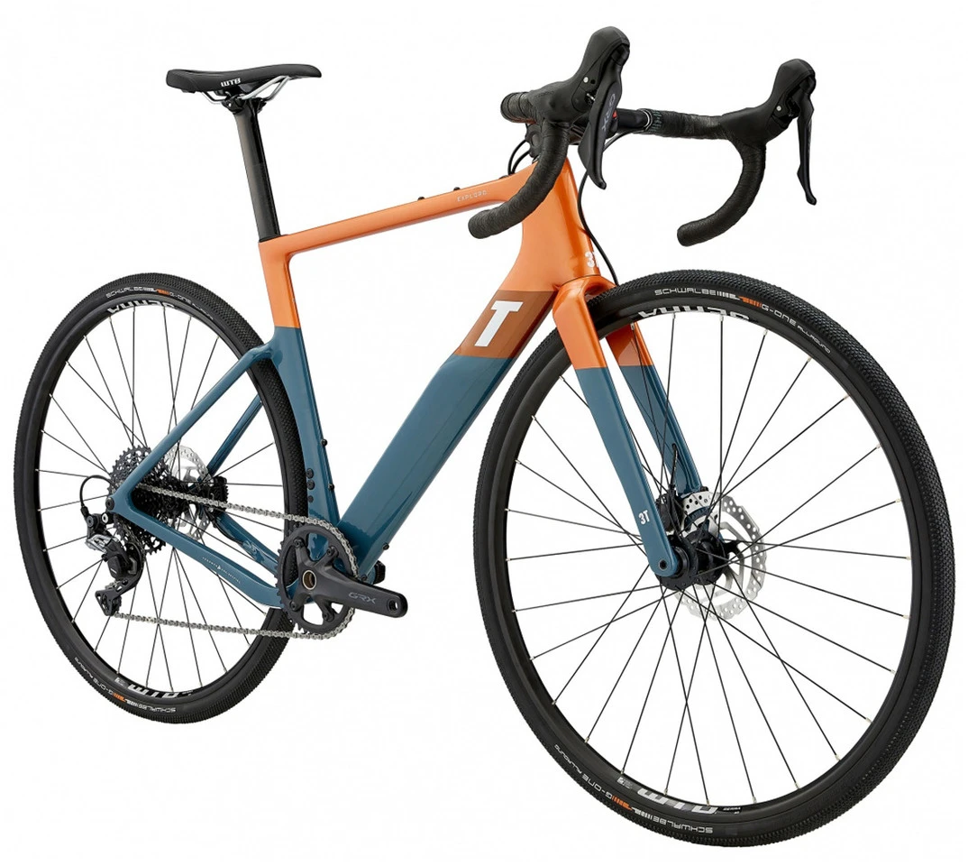 Spezifikationen:Einsatzbereich:GravelLaufradgröße:28″Größen:XXS, XS, S, M, L, XLMaterial Rahmen:CarbonMaterial Gabel:CarbonKomponenten:Rahmen:3T Exploro RaceMaxGabel:3T Fango RaceMaxVorbau:3T Apto StealthLenker:3T Superergo ProSteuersatz:3T MinMax by CaneCreek IS42/28,6 – IS47/38Sattelstütze:3T Charlie TeamSattel:WTB SL8Kurbel:Shimano GRX, 40 Z KettenblattPedale:ohneBremsen:Shimano GRX, Flat Mount, hydraulisch, Disc Center Lock, 160 mmSchalt-/Bremshebel:Shimano GRXSchaltwerk:Shimano GRX, langer KäfigKassette:11-fach PowerGlide, 11-42 ZKette:Shimano HG-701Laufräder:WTB Serra, 700C, Tubeless ReadyReifen:Schwalbe G-One Allround Evolution TLE, 35 x 700CFreigaben:Gewichtsbeschränkung:110 kg (Fahrergewicht)Bremsscheibengröße max.:160 mmFeatures:schmales Steuerrohr wie bei Rennrädern mit 1 1/4″ Gabelschäftengroßer 1,5″ Gabelschaft für mehr Stabilitätreduzierte Gabelkrone für weniger Gewicht und bessere Aerodynamikintegrierte Schutzblechbefestigungenselbstausrichtende SattelklemmeGeometrie:XXS: