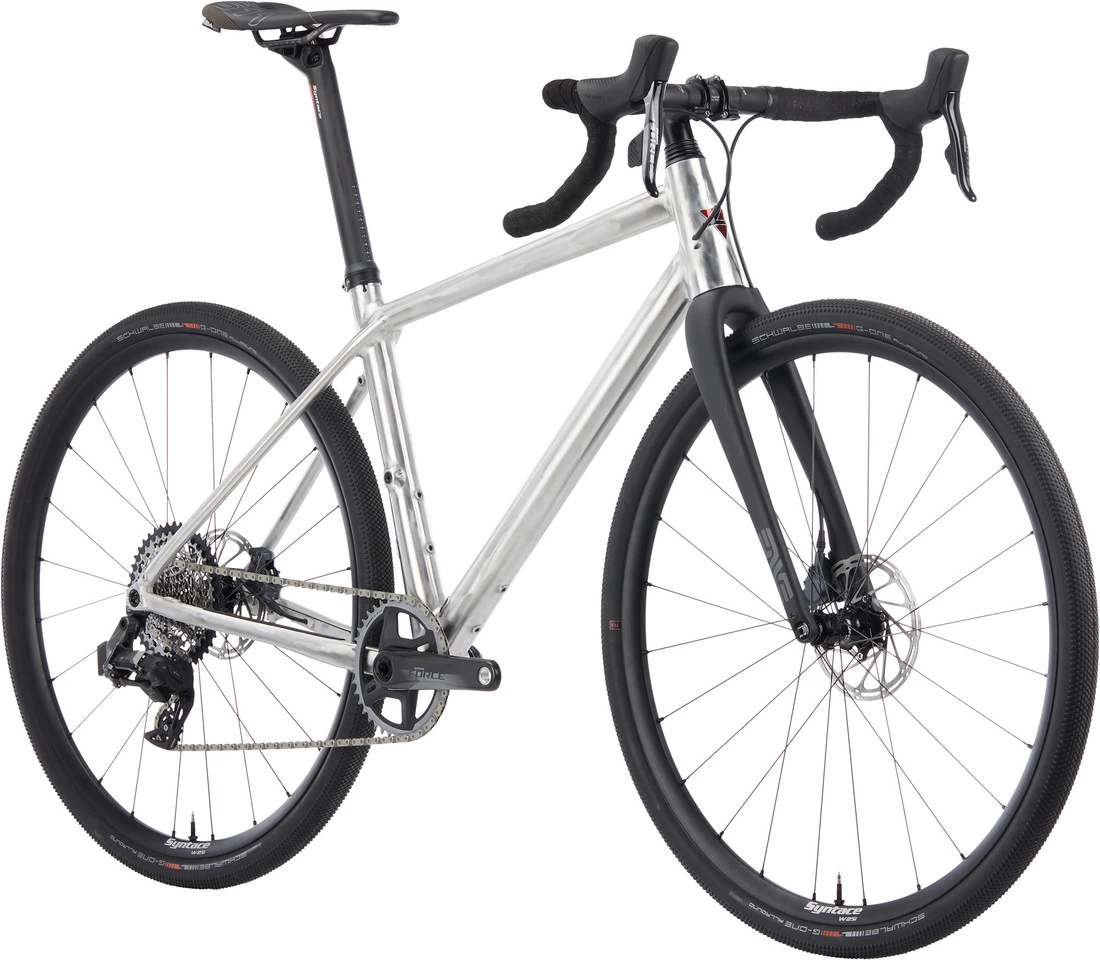 Spezifikationen:Einsatzbereich:GravelLaufradgröße:28″Größen:S, M, L, XL, XXLMaterial Rahmen:AluminiumMaterial Gabel:CarbonKomponenten:Rahmen:Liteville 4-ONE Mk2, Disc Flat Mount, interne KabelführungGabel:ENVE Carbon, Disc Flat Mount, interne KabelführungVorbau:Syntace Liteforce 31.8, TwinFix-KlemmungLenker:Syntace Racelite Carbon XL (S), Syntace Racelite Carbon 3XL (M-XXL)Steuersatz:Syntace, tapered 1 1/8″ – 1,5″Sattelstütze:Syntace P6 Carbon Setback, 480 mmSattel:SQlab 611 Ergowave Carbon, 140 mmKurbel:SRAM Force Carbon, 1-fach, 40 Z, T47-InnenlagerPedale:ohneBremsen:SRAM Force, hydraulisch, Flat Mount, 160 mmSchalt-/Bremshebel:SRAM Force eTap AXSSchaltwerk:SRAM Rival XPLR eTap AXS, 12-fachKassette:SRAM XPLR XG-1271, 12-fach, 10-44 ZKette:SRAM Force, 12-fach, PowerLockLaufräder:Syntace W25i, SpeedTorque-Naben, VR 12 x 100 mm, HR 12 x 142 mm, Syntace X-12 SteckachsenReifen:Schwalbe G-One Allround 40 mmFreigaben:Bremsscheibengröße max.:160 mmKettenblattanzahl:1-fach, 2-fachFeatures:Gravelbike mit Komponenten aus Carbon und elektronischer AXS-Antriebsgruppe von SRAM für Geländetouren und Bikepacking-Abenteuerkabellose SRAM AXS 1×12-fach-Schaltung für saubere OptikCarbon-Gabel von ENVE mit interner Kabelführunglängeres Steuerrohr als beim Vorgängermodell für aufrechteren Sitzwartungsarmes T47-Innenlager überträgt Kraft optimalMontagepunkte am Rahmen für Gepäckbefestigung und FlaschenhalterGravelreifen von Schwalbe für unterschiedliche Geländetypen und Konditionenmit vollversenkbaren EIGHTPINS-Sattelstützen kompatibelGeometrie:S: