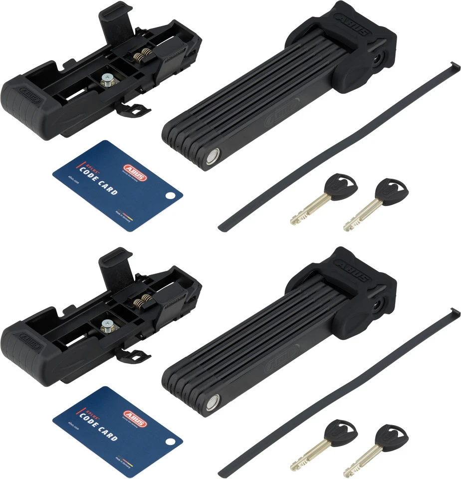 Lieferumfang:2 x Faltschloss ABUS Bordo 6000K2 x Halter ABUS SH2 x Spanngurt4 x Schlüssel2 x ABUS Plus Code Card