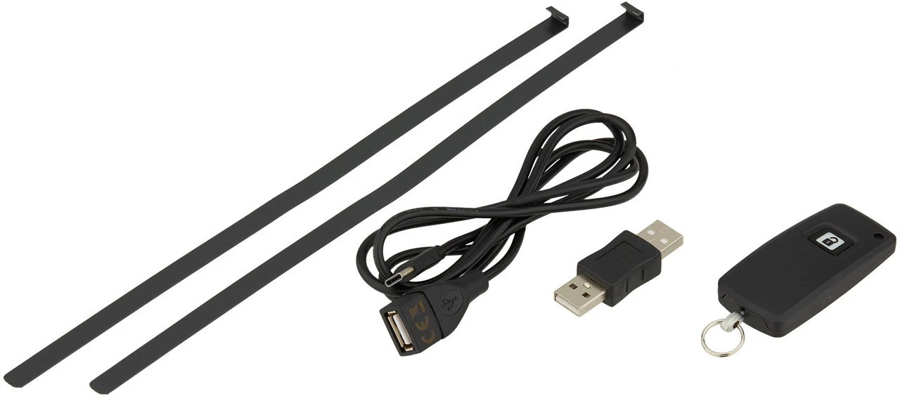 Lieferumfang:1 x Faltschloss ABUS Bordo 6500A SmartX1 x Halter ABUS SH2 x Spannband1 x Fernbedienung SmartX1 x Ladekabel1 x USB-Adapter