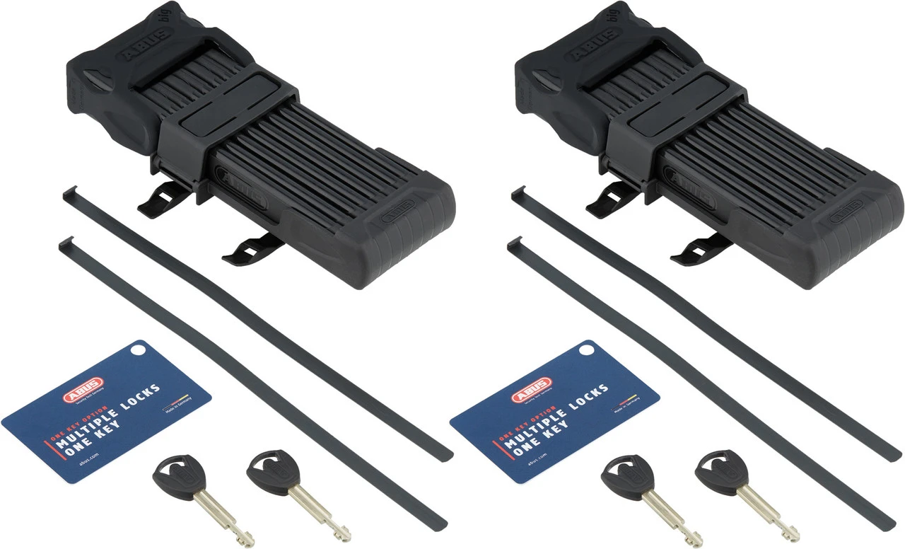 Lieferumfang:2 x Faltschloss ABUS Bordo Big 6000K2 x Halter ABUS SH4 x Schlüssel2 x ABUS Plus Code Card4 x Spanngurt