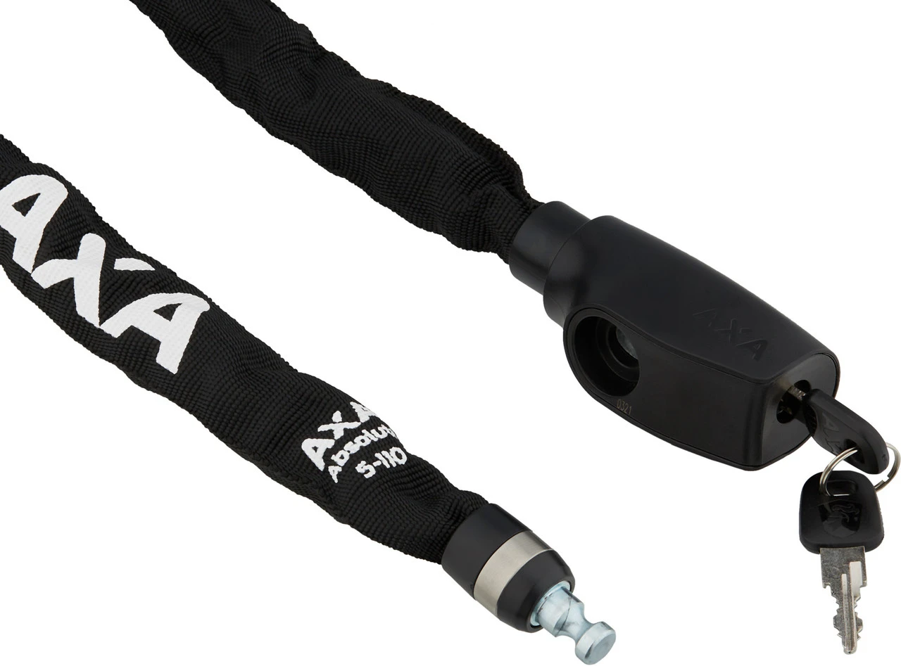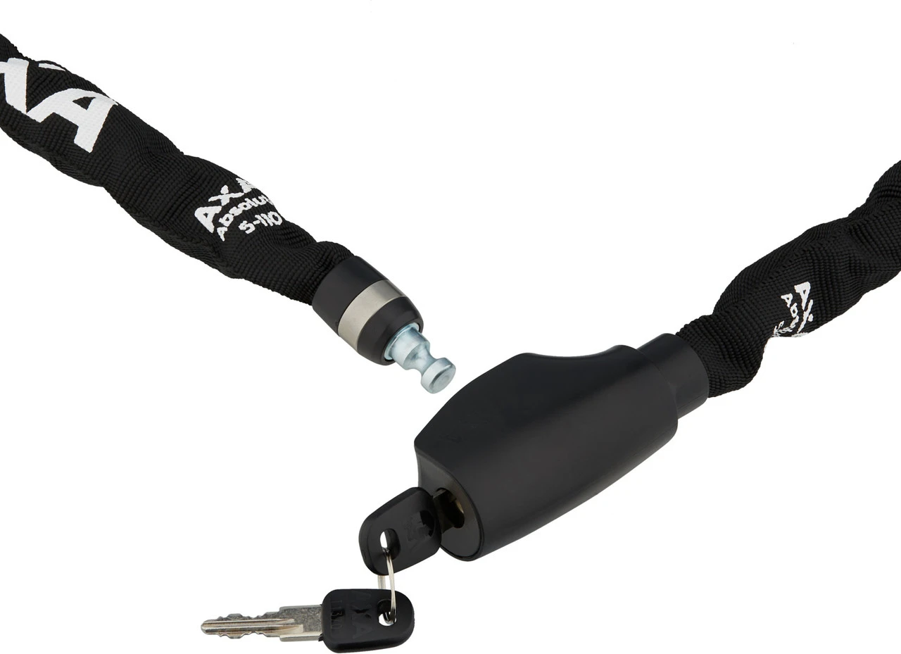 Spezifikationen:Bauweise:KettenschlossEinsatzbereich:CityMaße (Länge x Kettenstärke):90 x 0,5 cm, 110 x 0,5 cmVerschlussart:SchlüsselSicherheitsstufe:7 (von 15)Technische Daten:Länge:90 cm, 110 cmKettenstärke:0,5 cmMaterial:StahlFeatures:Kettenglieder aus gehärtetem StahlZylinderabdeckhaube zum Schutz gegen Feuchtigkeit und SchmutzPolyesterhülle zum Schutz vor Lackschäden Herstellernummern:90 cm:59050995SS110 cm:59051195SSLieferumfang:1 x Kettenschloss Axa Absolute 52 x Schlüssel Axa
