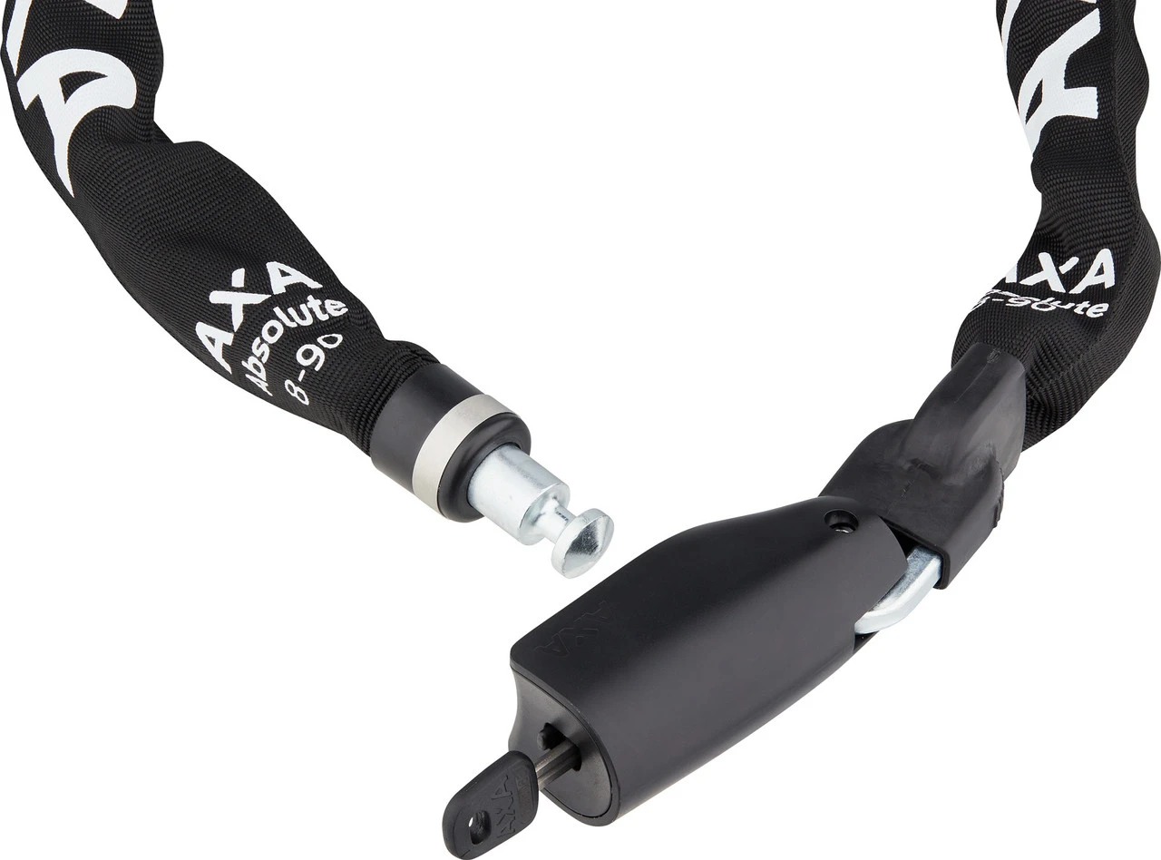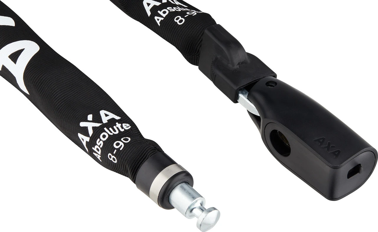 Spezifikationen:Bauweise:KettenschlossEinsatzbereich:CityMaße (Länge x Kettenstärke):90 x 0,8 cm, 110 x 0,8 cmVerschlussart:SchlüsselSicherheitsstufe:9 (von 15)Technische Daten:Länge:90 cm, 110 cmKettenstärke:0,8 cmMaterial Kette:StahlFeatures:stabile Kettenglieder aus gehärtetem Stahl mit Schneidestärke bis zu 73 kNZylinder mit Aufbohrschutzdeutliches Klick-Geräusch beim VerschließenAbdeckhaube schützt Zylinder vor Nässe und SchmutzPolyesterüberzug zum Schutz vor Beschädigungeninternationaler online Schlüsseldienst zum Nachbestellen von SchlüsselnHerstellernummern:90 cm:59080995SS110 cm:59081195SSLieferumfang:1 x Kettenschloss Axa Absolute 82 x Schlüssel Axa