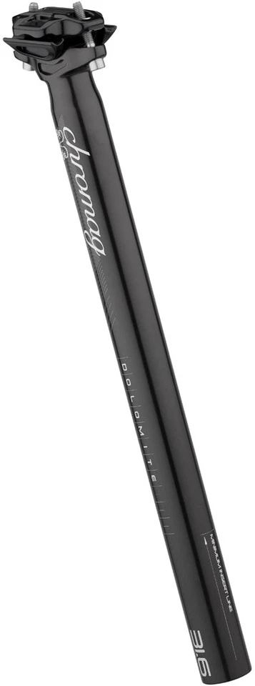 Technische Daten:Einsatzbereich:Cross Country, All MountainMaterial:Aluminium (2014-T6)Länge:400 mmDurchmesser:27,2 mm, 30,9 mm, 31,6 mmSetback:0 mmKlemmung:2-SchraubenKompatible Sattelstreben:7×7 mm (Standard)Features:One-Piece-DesignCNC-FinishM6 x 35 mm Schraubentexturiert für besseren Halt im RahmenHerstellernummern:27,2 mm / 400 mm / SB 0 mm:120-001-0130,9 mm / 400 mm / SB 0 mm:120-003-0131,6 mm / 400 mm / SB 0 mm:120-004-01Lieferumfang:1 x Sattelstütze Chromag Dolomite