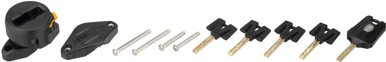 Lieferumfang:1 x Bügelschloss CONTEC PowerLoc1 x Halterung4 x Schlüssel1 x LED-Schlüssel