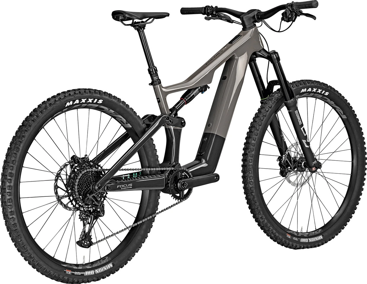 Spezifikationen:Einsatzbereich:All MountainLaufradgröße:29″Federweg vorne:160 mmFederweg hinten:150 mmGrößen:S, M, L, XLMaterial Hauptrahmen:CarbonMaterial Hinterbau:CarbonE-Antrieb:Ausführung:MittelmotorMotortyp:Fazua Ride 60, 60 NmUnterstützung max.:25 km/hLeistung:450 WAkkutyp:Fazua Ride 60 Energy 430, entnehmbar, 43 VKapazität:430 Wh (10 Ah)Display:Fazua LED Hub + Ring ControlKomponenten:Rahmen:FOCUS JAM² SL, Carbon Technology Frame, 150 mm F.O.L.D. GEN3 Kinematik, Postmount 180 mm, interne Kabelführung, 12 x 148 mm Steckachse (Boost)Gabel:DVO Diamond E3, 571 mm Einbaulänge, 44 mm Vorlauf, 15 x 110 mm Steckachse (Boost)Vorbau:FOCUS C.I.S. integriert, 50 mm 0°, 35 mm Lenkerklemmung, AluminiumLenker:FOCUS, Aluminium, 800 mm, 30 mm Rise, 9° BacksweepGriffe:FOCUSDämpfer:RockShox Deluxe Select+, 210 x 55 mm, Hardware: 25,0 x 8,0 mm, no BushingRemote System:ohneSteuersatz:Acros ZS56/ZS56 (ICR), FOCUS C.I.S. integriert, 1,5/1,5″ WinkelsteuersatzSattelstütze:Post Moderne Dropper Post PM-MT171, 31,6 mmSattel:Fizik TaigaKurbel:Samox EC40 ISIS, 165,0 mm, 32 Z, Innenlager in Motoreinheit integriertPedale:MTB, mit ReflektorenBremsen:SRAM Guide T, 200 mm/200 mmSchalthebel:SRAM SX Eagle, 12-fachSchaltwerk:SRAM NX Eagle, 12-fachKassette:SRAM PG-1230 Eagle, 12-fach, 11-50 ZKette:SRAM SX Eagle, 12-fachFelgen:Race Face AR30 OffsetSpeichen:Niro, schwarzVorderradnabe:Novatec D041, 15 x 110 mmHinterradnabe:Novatec D462, 12 x 148 mmReifen Vorderrad:Maxxis Minion, EXO, 63-622Reifen Hinterrad:Maxxis Minion, EXO, 63-622Freigaben:Gewichtsbeschränkung:135 kg SystemgewichtBremsscheibengröße max.:203 mm (HR)Reifengröße max.:66-622Kettenblattanzahl:1-fachKettenblattgröße max.:34 ZFeatures:superleichtes E-MTB-Fully mit Vollcarbon-Rahmen160 mm Federweg vorne und 150 mm hinten, überarbeitete F.O.L.D.-Kinematikagile, auf Fahrspaß ausgelegte Geometrie bei gleichbleibender StabilitätCarbon-Layup mit High-Strength- und High-Tenacity-Fasern für perfekte Kräfteverteilung und Steifigkeit160 mm DVO Diamond Gabel, RockShox Deluxe Dämpfer, SRAM NX Eagle 1×12-fach-SchaltungFazua Ride 60 E-Antrieb mit 430-Wh-Akkuoptimale Mischung aus E-Support und den Fahreigenschaften eines Pure Bikes ohne Motorgeringe Geräuschentwicklung des Motors für volle Konzentration auf den Trailoptimiertes Oberrohrdesign mit Teilintegration des Dämpfers bei voller BenutzerfreundlichkeitMotor und Akku vollständig im Rahmen integriert für ungestörte OptikAkku an der Unterseite des Unterrohrs herausnehmbar, Innensechskant zur Öffnung der Abdeckung in Steckachse integriertaufgeräumtes Cockpit mit C.I.S.-IntegrationLenkwinkel flach oder steil einstellbar durch Drehen der Steuersatzschalen: je nachdem mehr Bergaborientierung oder mehr AgilitätKettenstrebenlänge anpassbar durch Einstellen des Flip Chips auf lange oder kurze Position: je nachdem mehr Stabilität oder mehr Agilitätdrei verschiedene Fahrmodi, über die Fazua App weiter individualisierbargedichtete Rahmenlager für längere Lebensdauerspezieller Rahmenschutz an Unterrohr und KettenstrebenEN-Klassifikation 4: Fahrrad für Sport- und Wettbewerbsfahrten mit mäßigem technischem Anspruch der Wege, für Sprünge bis höchstens 120 cm und/oder Abfahrten auf unbefestigten Wegen bei Geschwindigkeiten von weniger als 40 km/h, fahrtechnische Fähigkeiten, Übung und gute Fahrkontrolle erforderlichTechnologien:F.O.L.D. GEN3