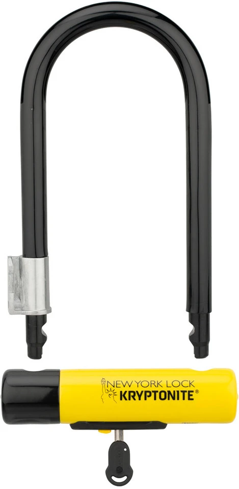 Lieferumfang:1 x Bügelschloss Kryptonite New York1 x Schlüssel mit integrierter Beleuchtung2 x Schlüssel, einfach1 x Rahmenhalterung