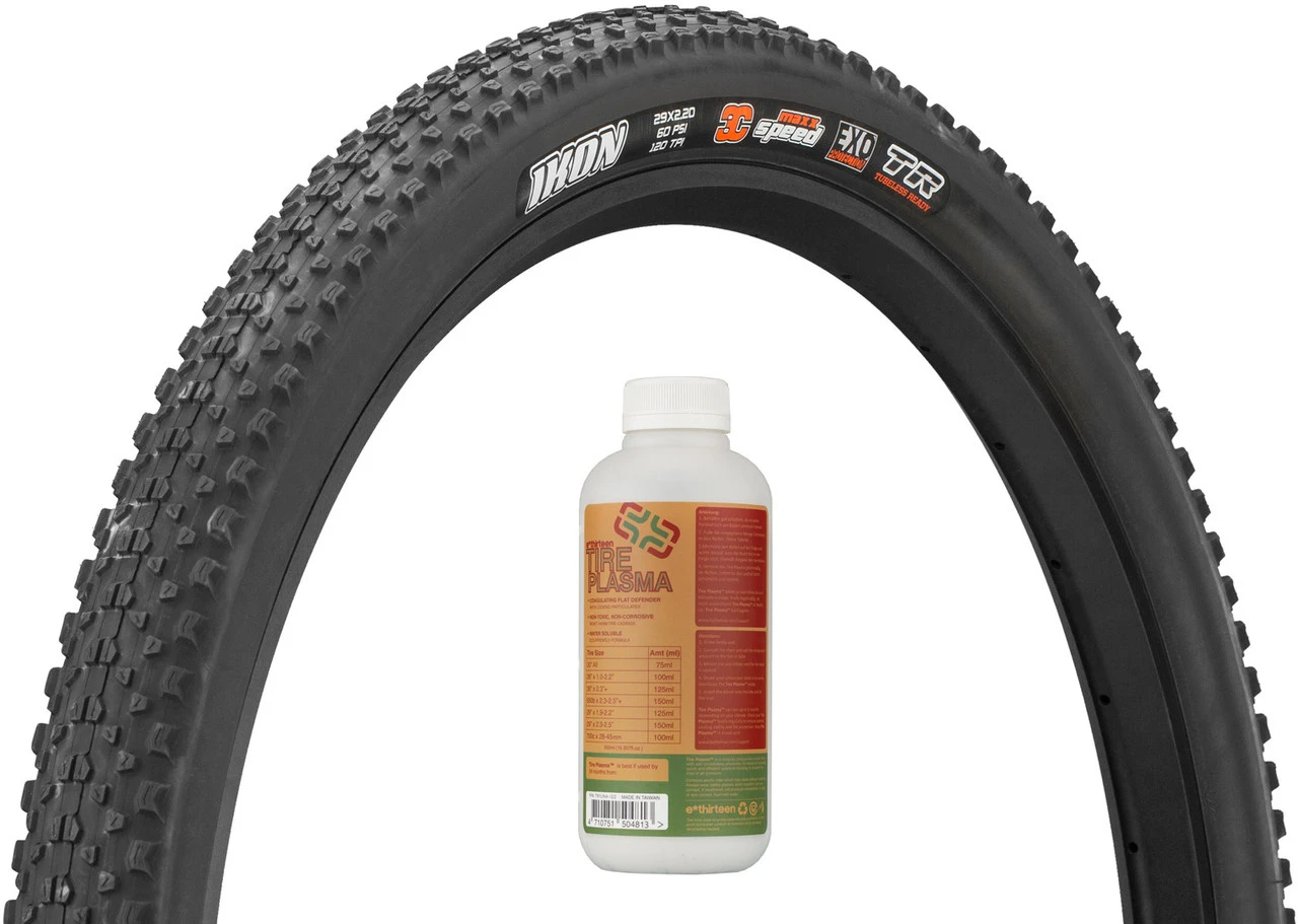 Der Maxxis Ikon 3C MaxxSpeed EXO TR 29″ Faltreifen im Set mit dem e*thirteen Tire Plasma Reifendichtmittel