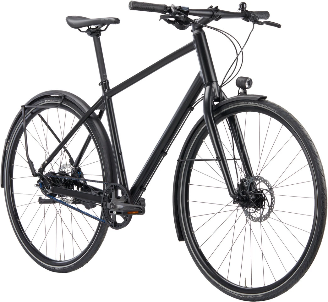 Spezifikationen:Einsatzbereich:City, Touring & TrekkingLaufradgröße:28″Größen:S, M, L, XLMaterial Rahmen:Aluminium (6061)Material Gabel:Aluminium (6061)Komponenten:Rahmen:Vortrieb Modell 1 HerrenGabel:Vortrieb Modell 1 Straight StarrgabelVorbau:Vortrieb Modell 1 31,8 x 6°Lenker:Vortrieb Modell 1 Flat 660 mm x 16°Lenkergriffe:Ergon GA30 Stealth Vortrieb CustomSteuersatz:Acros AiX-330 Fiber, IS41/28,6-IS41/30Sattelstütze:Vortrieb Modell 1 27,2 x 400 mmSattel:Ergon SM10 Stealth Vortrieb CustomKurbel:Gates CDN S250 Kurbel mit Thun Zumba BSA InnenlagerPedale:Vortrieb Urban Grip mit Grip TapeBremsen/Bremshebel:Magura MT4N Carbotecture Scheibenbremsen, 2-Kolben, 4-Finger, mit Storm HC Rotoren 160 mmSchalthebel:Shimano Alfine SG-S7001 11-GangAntrieb:Gates Riemen CDX mit Riemenscheibe vorne 46 T/hinten 22 TSchutzbleche:Racktime Wingee Aluminium mit TaschenstrebenScheinwerfer:Supernova E3 Pure 3s LEDRücklicht:Supernova E3 Tail Light 2 für Wingee HeckschutzblechParkstütze:Hebie 661 für KSA40 HinterbaubefestigungFelgen:Vortrieb Urban TourSpeichen:VortriebVorderradnabe:Shutter Precision PL-8 NabendynamoHinterradnabe:Shimano Alfine SG-S7001 11-GangReifen:Schwalbe Marathon Supreme Evolution V-Guard 32-622 Reflex, faltbarFreigaben:Gewichtsbeschränkung:130 kg GesamtgewichtBremsscheibengröße max.:160 mm hinten, 180 mm vorneReifengröße max.:32-622Features:hochwertigste Rahmenverarbeitung: verschliffene Schweißnähte für cleanes, zeitloses Design; umweltfreundliche, robuste Pulverbeschichtung für edles Finishmaximal zuverlässig: Alfine 11-Gang Nabenschaltung mit Riemenantrieb ist wartungsarm und leiseAusstattung vom Feinsten: Beleuchtung von Supernova, Anbauteile von Ergon, Scheibenbremsen von Maguraselbst versteckte Details wie die Acros Lager entstammen dem High-End-Regalsportive Fahreigenschaften: antrittssteif und wendigDesignanspruch mit Nutzwert vereint: Wingee Schutzblech-/Trägersystem kann 8 kg je Seite aufnehmen und ermöglicht damit auch Einkäufe oder TagesausflügeGeometrie:S: