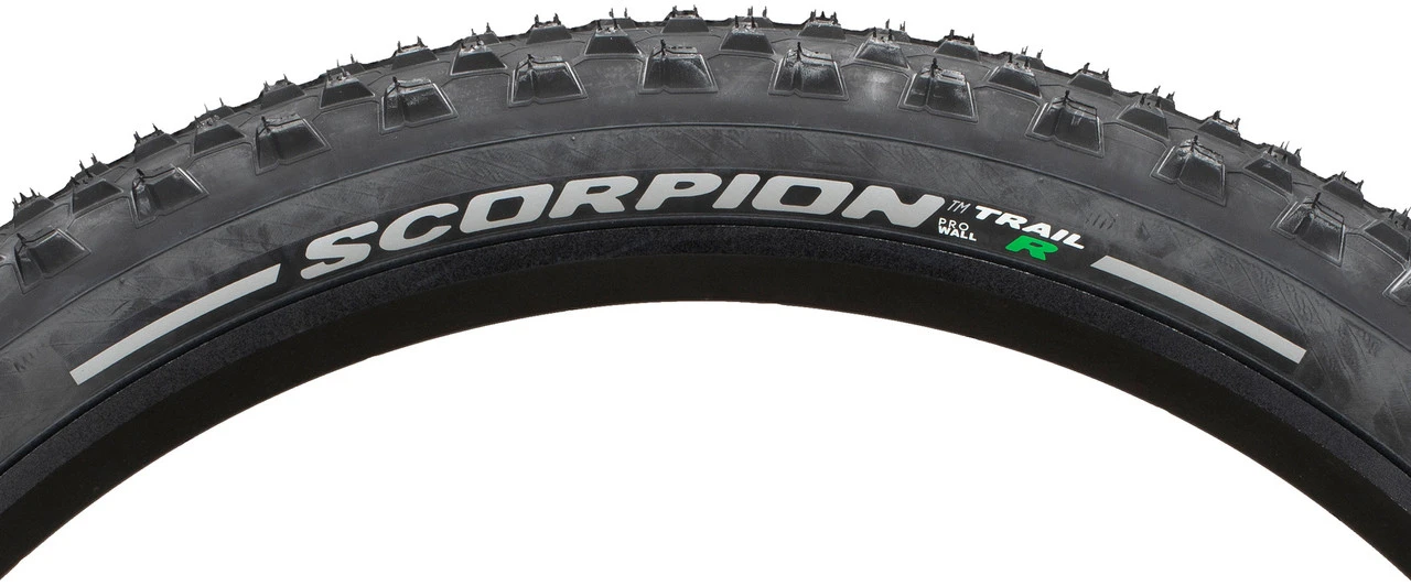 Der speziell für das Hinterrad entwickelte Scorpion Trail Rear Specific 27,5″ Faltreifen von Pirelli ist die perfekte Ergänzung zum Scorpion Trail Mixed Terrain. Stollenhöhe und –abstand liegen im mittleren Bereich, das vom Motocross adaptierte Design der Mittelstollen sorgt für überragende Traktion und sicheren Bremsgrip. Die Scorpion Trail Reifen sind ausgestattet mit dem SmartGRIP Compound und der ProWALL Karkasse.