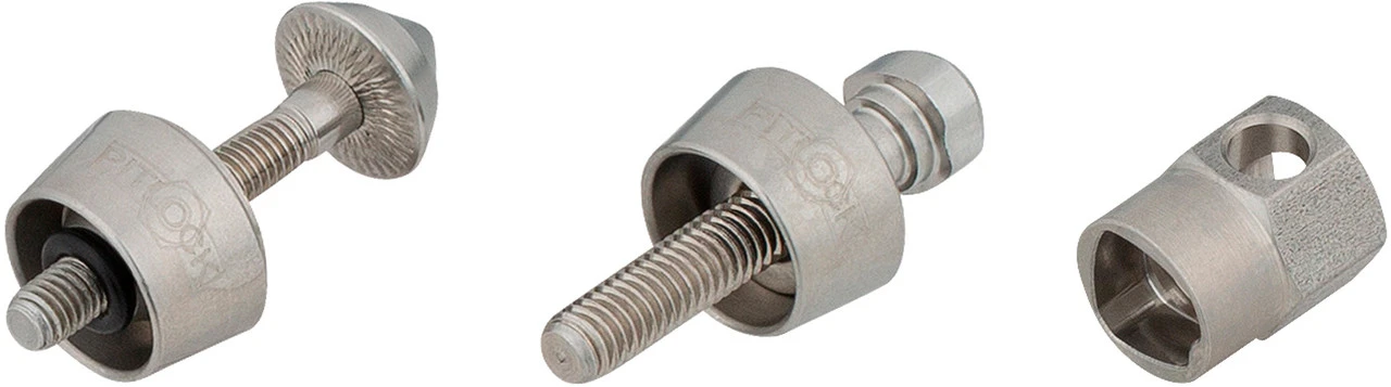 Sicherungssystem für Lampe und Halter. Die 23 mm Achse sichert den Scheinwerfer mit Halter. Eine Pitlock – Zusatzachse verbindet den Scheinwerferhalter mit dem Fahrrad. Die Zusatzachse ist in verschiedenen Größen erhältlich.
