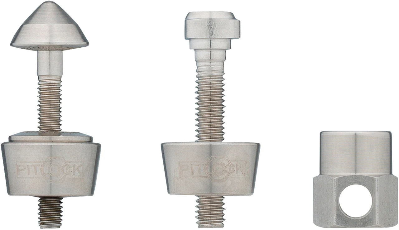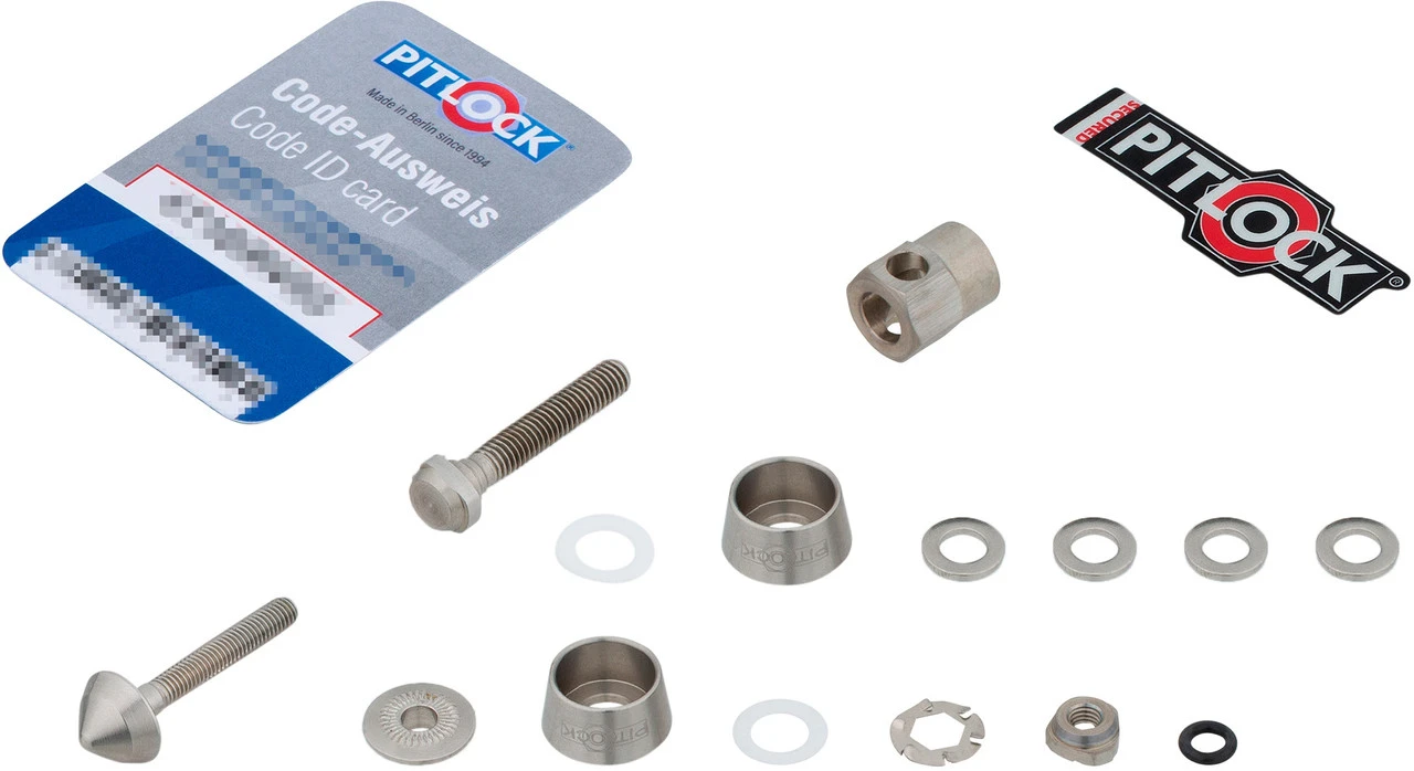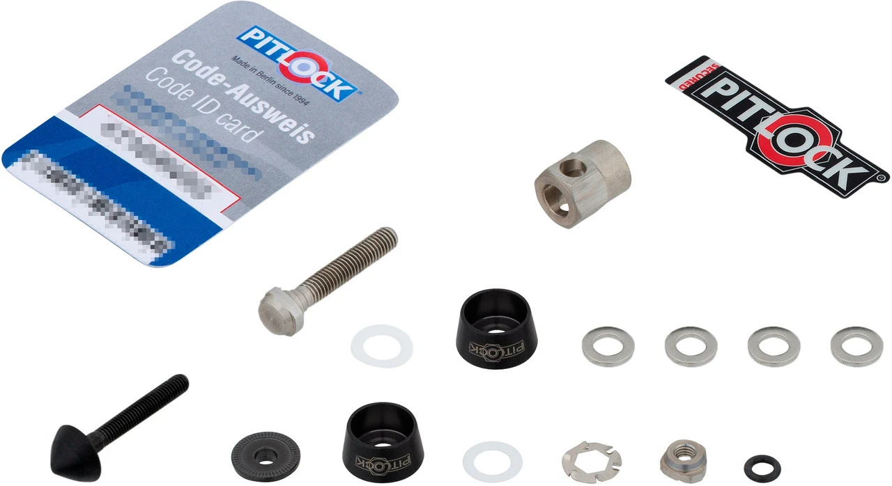 Codeschraube M6Achse: 23 mmZusatzachse: Keine, dafür M6 Codeschraube mit 32 mm Einbaulänge für SackbohrungLieferumfang:2 x Achse mit Verschluss1 x Schlüssel (PIT)1 x Ausweis Pitlock