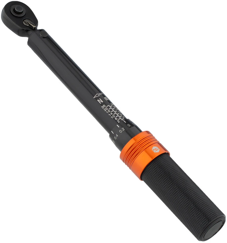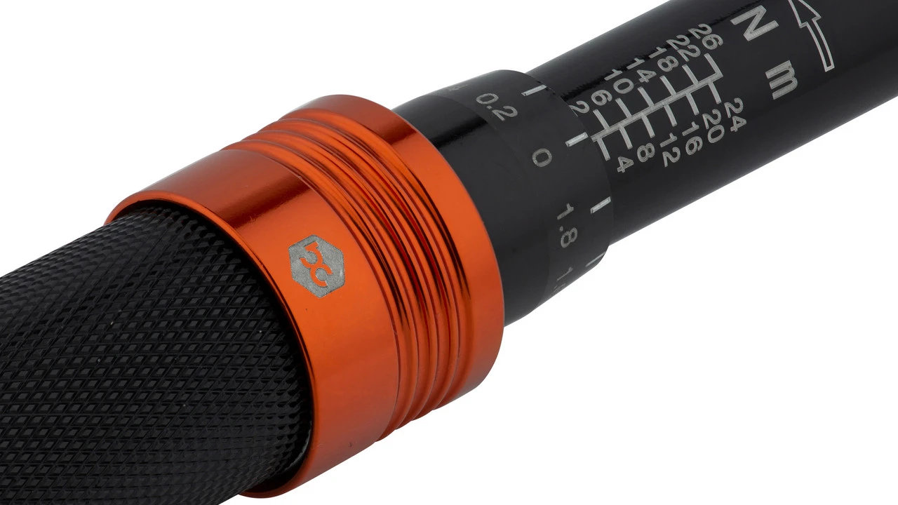 Der Premium Drehmomentschlüssel von bc basic für die Fahrradwerkstatt lässt sich zwischen 2 und 26 Nm in 0,2-Nm-Schritten fein einstellen und bewahrt Dich so zuverlässig vor zu fest oder zu locker angezogenen Schrauben. Sein 1/4″ -Vierkant-Antrieb aus robustem Stahl ist vor allem bei der Montage von empfindlichen Carbonteilen hilfreich. Du stellst einfach das gewünschte Ziel-Drehmoment ein und ziehst die Schraube im Uhrzeigersinn bis zum Knacken an. Im Lieferumfang der Drehmomentratsche enthalten sind auch ein siebenteiliger Innensechskantbit-Satz sowie zwei Torx-Aufsätze. Alles zusammen hat in dem praktischen, stabilen Etui Platz.