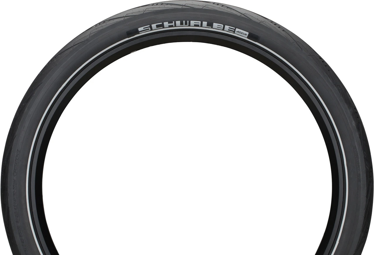 Der Super Moto Drahtreifen in der 27,5″ Version aus der Schwalbe Performance Line kombiniert ein von Motorrädern inspiriertes Profildesign mit ADDIX-Gummimischung und Double Defense RaceGuard Pannenschutz. Damit verleihst Du Deinem E-Bike nicht nur das gewisse Etwas, sondern kannst gleichzeitig auch von hervorragendem Grip und Rollwiderstand profitieren.