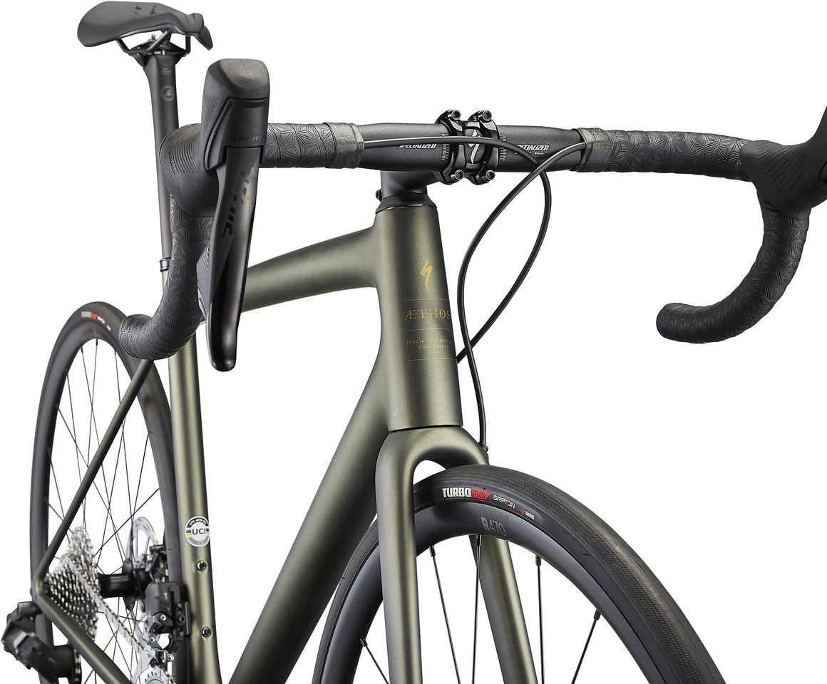 Spezifikationen:Einsatzbereich:RoadLaufradgröße:28″Größen:52 cm, 54 cm, 56 cm, 58 cm, 61 cmMaterial Rahmen:Carbon (10r)Material Gabel:CarbonKomponenten:Rahmen:Specialized Aethos, FACT™-Carbon, Disc Flat Mount, 12 x 142 mm SteckachseGabel:Specialized Aethos, FACT-Carbon, Disc Flat Mount, 369 mm Einbaulänge, 12 x 100 mm SteckachseVorbau:Specialized Pro SL, Aluminium, 4 SchraubenLenker:Specialized Shallow Drop, Aluminium 6061, 70 x 125 mm, 31,8 mm KlemmungSteuersatz:Specialized S202500012 (41,8 x 30,5 x 8 oben, 49,5 x 40,5 x 6,5 unten)Sattelstütze:Roval Alpinist CarbonSattel:Specialized Body Geometry Power CompKurbel:SRAM Rival, 35-48 Z, SRAM DUB BSA InnenlagerPedale:ohneBremsen:SRAM Rival, hydraulische ScheibenbremseSchalt-/Bremshebel:SRAM Rival eTap AXSSchaltwerk:SRAM Rival eTap AXS, 12-fachUmwerfer:SRAM Rival eTap AXS, AnlötKassette:SRAM Rival XG-1250, 12-fach, 10-36 ZKette:SRAM Rival, 12-fachLaufräder:DT Swiss R470, 20 mm Maulweite, Tubeless Ready, 24 Loch + Specialized Disc Center Lock Steckachsnaben, vollständig gedichtet, Aluminium-Freilauf + DT Swiss Champion 14 G Edelstahl-Speichen + DT Swiss MessingnippelReifen:Specialized Turbo Pro Faltreifen, 60 tpi, BlackBelt Pannenschutz, 700 x 26 mmFreigaben:Gewichtsbeschränkung:109 kg (Fahrer + Gepäck)Bremsscheibengröße max.:160 mmKettenblattanzahl:2-fachFeatures:perfekte Kombination aus ultimativem Fahrgefühl, geringem Gewicht und unvergleichbarem StilBalance aus Steifigkeit und außergewöhnlicher Fahrqualitätentwickelt mithilfe von Supercomputer-SimulationenGewichtseinsparung durch konische Veränderung von Rundrohrformeneffiziente Beschleunigung in steilen Anstiegen und technischen Abfahrtenganztägiger Komfort auf langen Fahrtennur für elektronische Schaltung ausgelegtSupacaz Super Sticky Kush LenkerbandSchläuche mit 48 mm SV-VentilTechnologien:FACT™