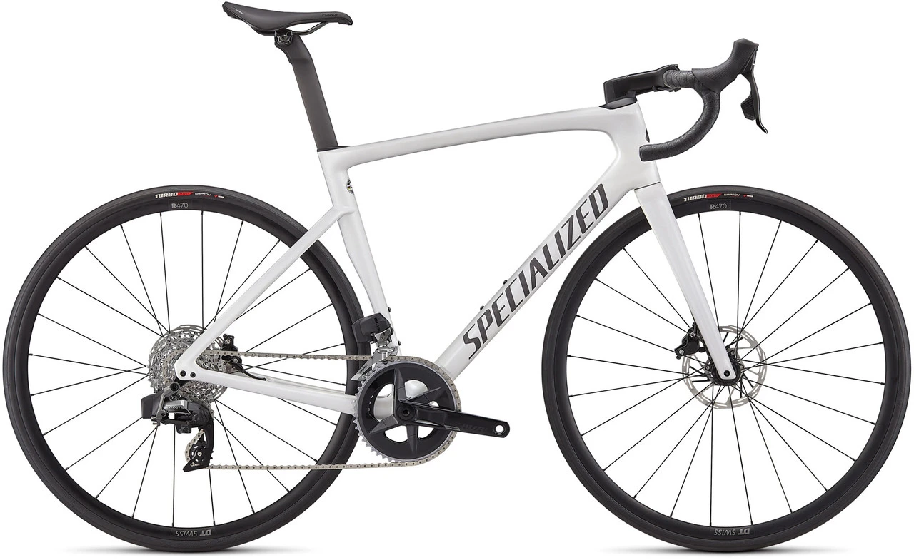 Spezifikationen:Einsatzbereich:RoadLaufradgröße:28″Größen:44 cm, 49 cm, 52 cm, 54 cm, 56 cm, 58 cm, 61 cmMaterial Rahmen:Carbon (10r)Material Gabel:CarbonKomponenten:Rahmen:Specialized Tarmac SL7, FACT™-Carbon, Disc Flat Mount, 12 x 142 mm SteckachseGabel:Specialized Tarmac SL7, FACT-Carbon, Disc Flat Mount, 366 mm Einbaulänge, 12 x 100 mm SteckachseVorbau:Specialized Tarmac integriert, 6°Lenker:Specialized Shallow Drop, Aluminium 6061, 70 x 125 mm, 31,8 mm KlemmungSattelstütze:Specialized 2021 S-Works Tarmac Carbon, FACT-Carbon, 20 mm SetbackSattel:Specialized Body Geometry Power CompKurbel:SRAM Rival, 35-48 Z, SRAM DUB BSA InnenlagerPedale:ohneBremsen:SRAM Rival, hydraulische ScheibenbremseSchalt-/Bremshebel:SRAM Rival eTap AXSSchaltwerk:SRAM Rival eTap AXS, 12-fachUmwerfer:SRAM Rival eTap AXS, AnlötKassette:SRAM Rival XG-1250, 12-fach, 10-36 ZKette:SRAM Rival, 12-fachLaufräder:DT Swiss R470, 20 mm Maulweite, Tubeless Ready, 24 Loch + Specialized Disc Center Lock Steckachsnaben, vollständig gedichtet, Aluminium-Freilauf + DT Swiss Champion 14 G Edelstahl-Speichen + DT Swiss MessingnippelReifen:Specialized Turbo Pro Faltreifen, 60 tpi, BlackBelt Pannenschutz, 700 x 26 mmFreigaben:Gewichtsbeschränkung:109 kg (Fahrer + Gepäck)Bremsscheibengröße max.:160 mmReifengröße max.:32-622 (700x32C)Kettenblattanzahl:2-fachFeatures:entwickelt auf Grundlage des Venge mit Hilfe der FreeFoil Shape Library, Isotopen-FEA-Analyse, Windkanal etc. für beste Verbindung aus Aerodynamik und Leichtgewichtentwickelt unter Berücksichtigung von Feedback von Profifahrern der Teams SD Worx, Deceuninck-Quick Step und Bora-Hansgrohekomfortabel auch auf langen Fahrten bei perfektem Handling und rennsportlicher Schnelligkeiteinzigartiger Layup-Plan für jede Rahmengröße mit unterschiedlichen Anordnungen, Ausrichtungen, Materialmengen in bestimmten Bereicheneinfache Integration für ein sauberes und vor allem schnelles CockpitSupacaz Super Sticky Kush LenkerbandSchläuche mit 48 mm SV-VentilTechnologien:FACT™