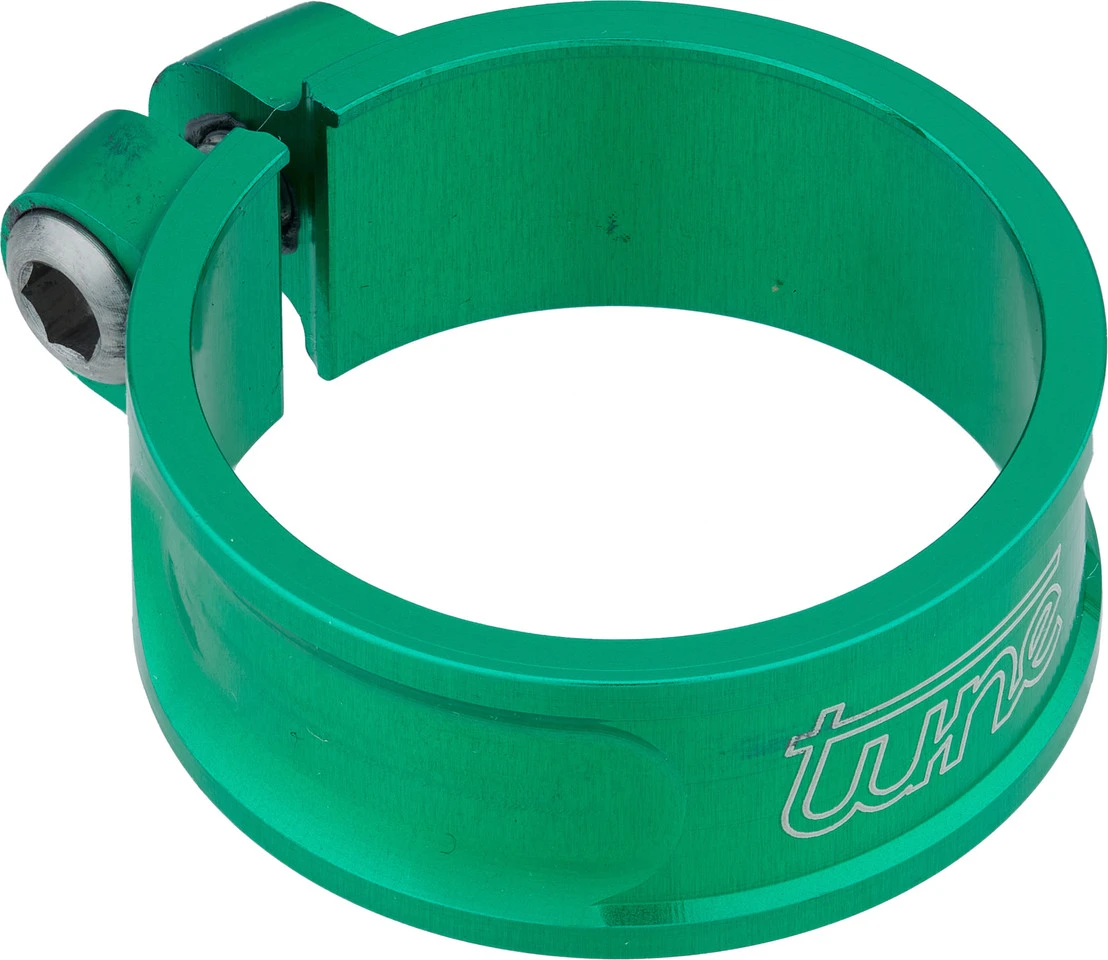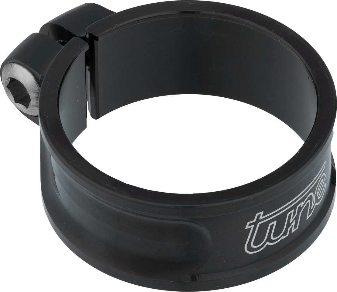 Die tune Schraubwürger Sattelklemme aus eloxiertem Aluminium sorgt für festen Halt der Sattelstütze im Sattelrohr.